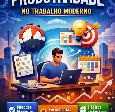 Neste guia completo sobre produtividade no trabalho moderno, você vai descobrir como organizar sua rotina, otimizar seu tempo e aumentar seus resultados usando métodos comprovados, ferramentas digitais e hábitos eficientes. Aprenda, de forma prática, como aplicar técnicas como GTD, Pomodoro, Time Blocking e Regra 80/20, além de escolher as melhores ferramentas e construir hábitos consistentes para manter o foco, reduzir a procrastinação e se destacar no ambiente profissional atual.